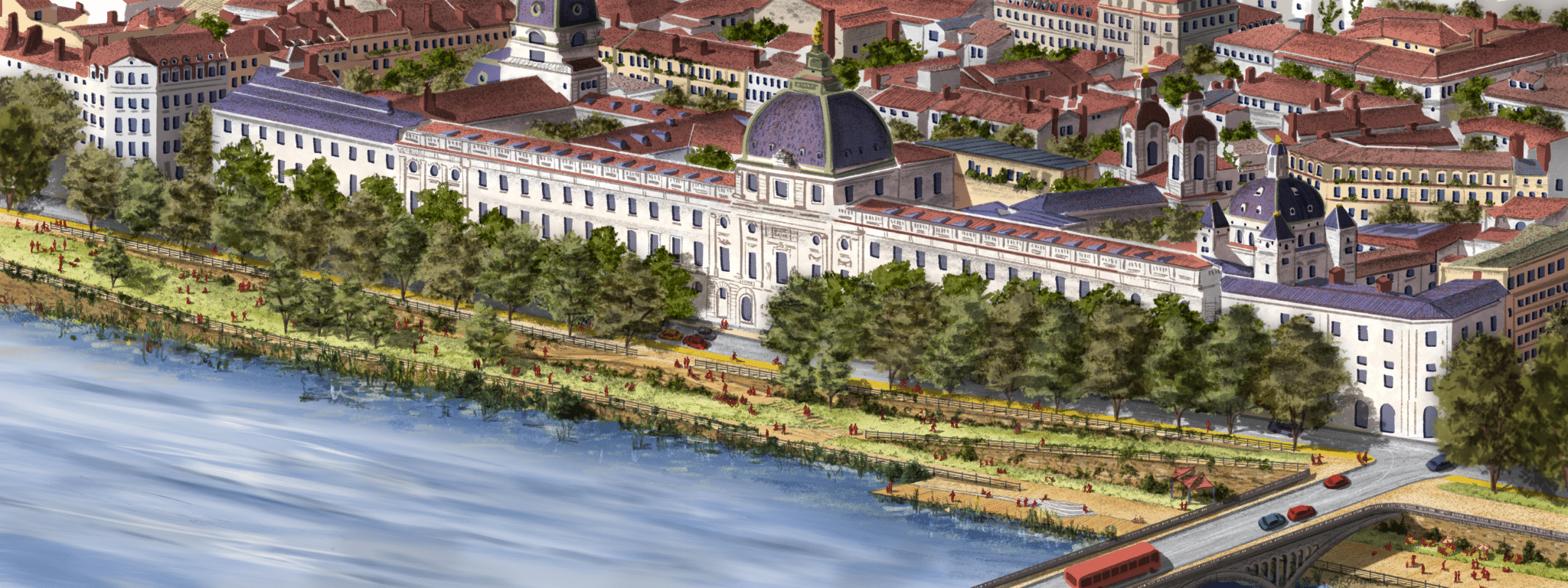 Autre pilier du projet, la transformation progressive des quais de la rive droite du Rhône sur 2,5 kilomètres vise à convertir un axe historiquement dominé par l’automobile en un espace multifonctionnel mêlant promenade, mobilités et activités urbaines.