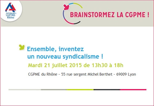 La CGPME invite ses 3 500 entrepreneurs adhérents du Rhône à repenser un nouveau syndicalisme à l’occasion d’un brainstorming le mardi 21 juillet. « Grâce à vos expertises, vos réseaux, vos synergies, que nous fédérons, saisissons l’opportunité de construire ensemble la CGPME de demain ! ». La CGPME du Rhône s’applique à elle-même ce qu’elle préconise quotidiennement aux entreprises : écouter les attentes de ses « clients », première étape clé pour son développement.