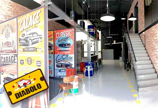 Diabolo a voulu faire de cet espace un lieu à leur image… Et c’est réussi ! Ils ont transformé un ancien hangar en un espace de réception adapté pour recevoir vos collaborateurs ! La structure et la décoration rappellent l’univers de la 2CV et de la mécanique… Le tout, dans un décor vintage… Avec une touche de folie ! La signature Diabolo !